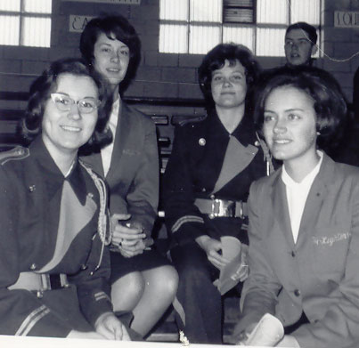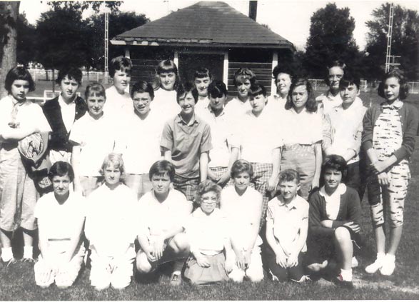 Kneeling: Judy Miller, Patty Manning, Julie Martin, Barbie Burke, Shirley Fritsch, Sharon Connelly, Mary Jo Kelly.