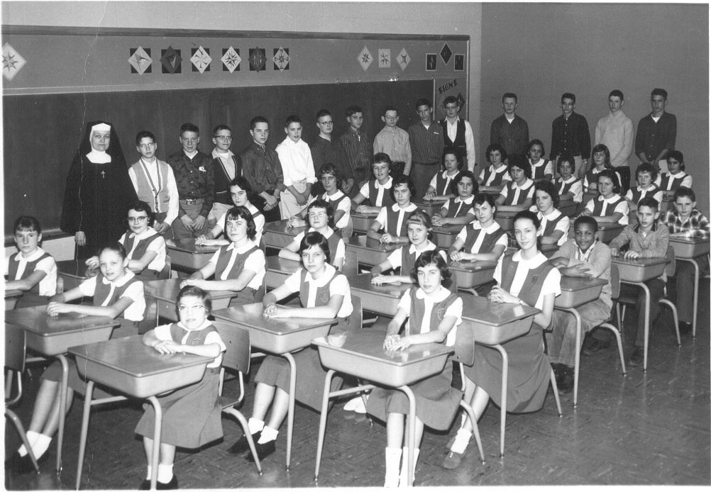 St. John's Kindergarten, 1952.. Picture was taken outside LHS. (Couresy of Mary Jo Kelly Schneider)